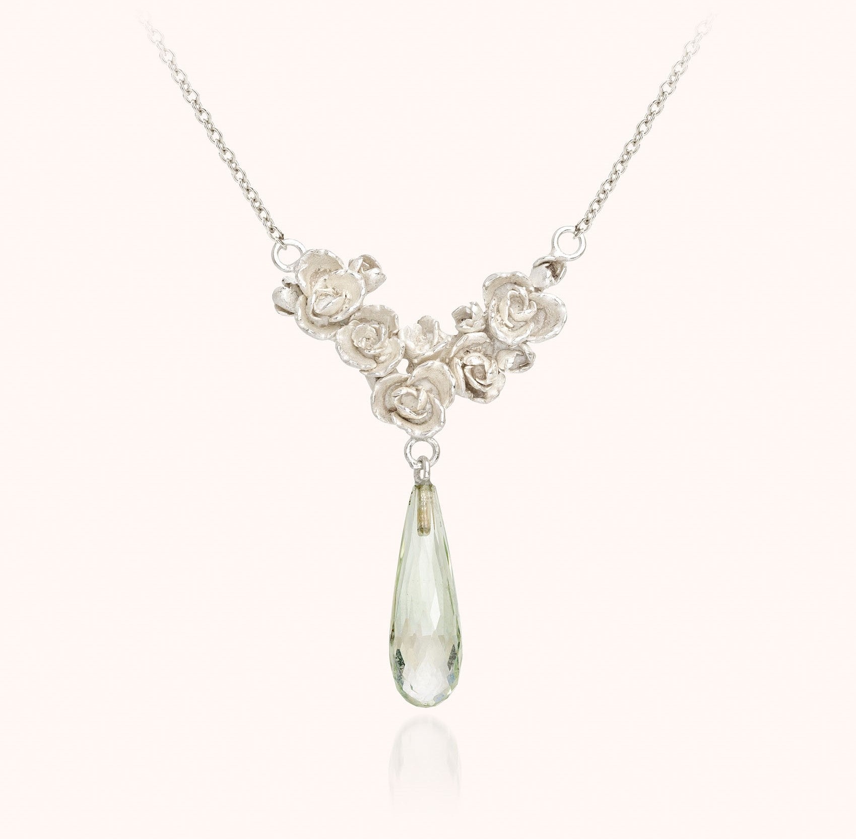 zilveren roosjes halsketting met druppel