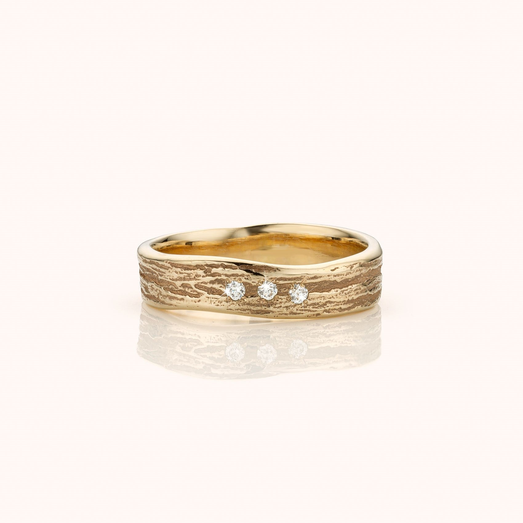 witgouden trouwring in warm witgoud of chamagne witgoud (niet gerhodieërd) met 3 diamanten