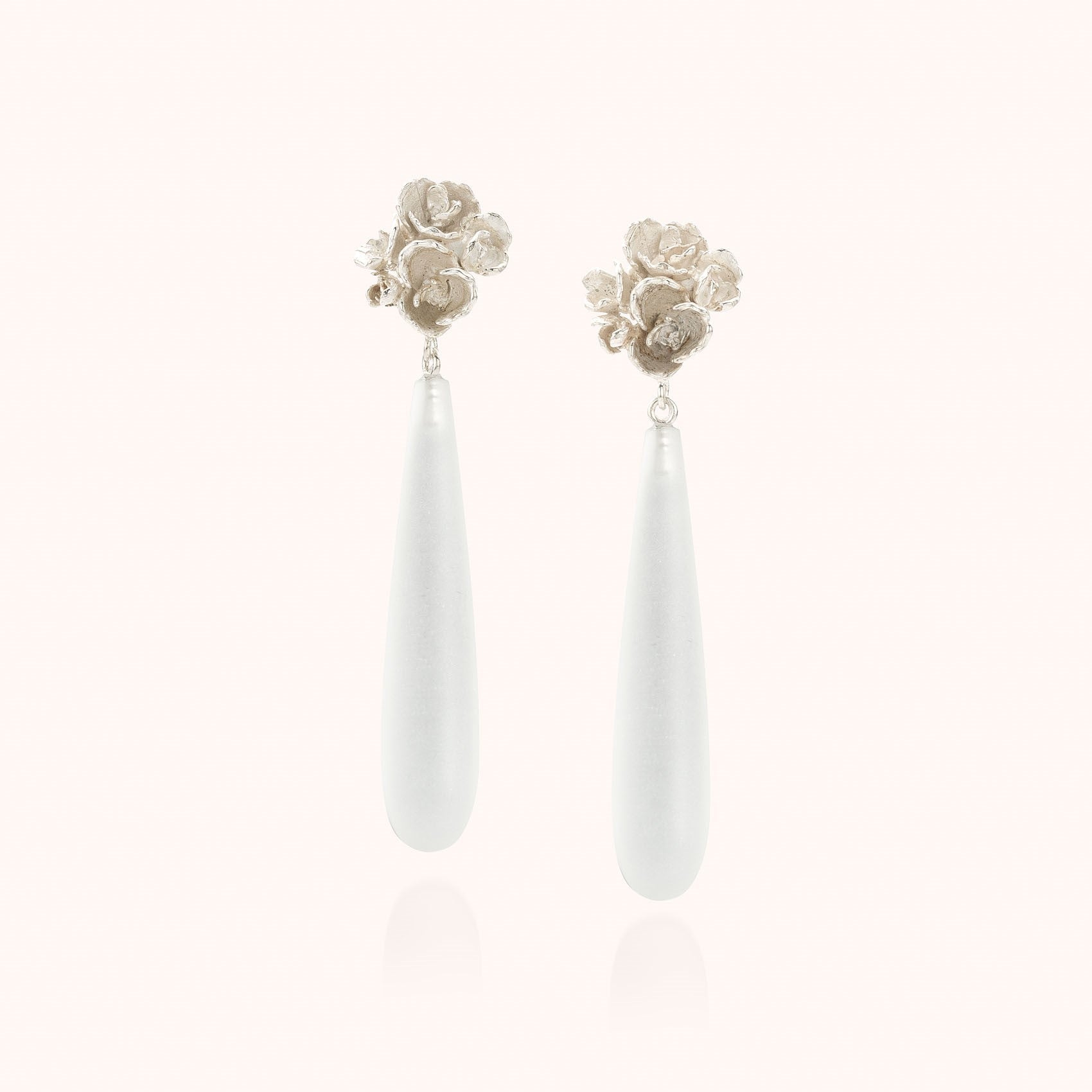 zilveren oorhangers met gematteerde bergkristal druppel
